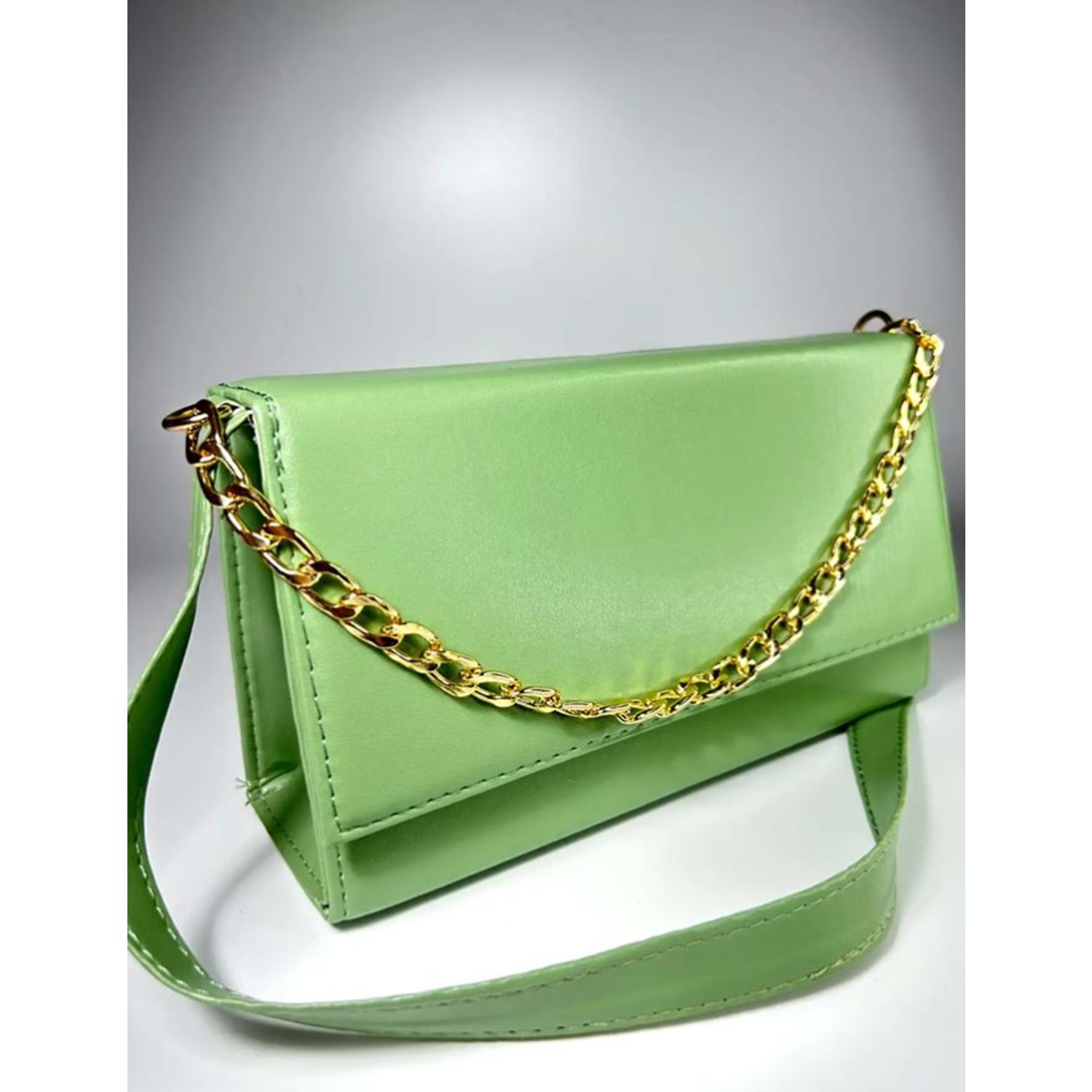 Bagorama CINDY Kadın Suni Deri Portföy Zincirli Çapraz Askılı Omuz Çantası - Açık Yeşil