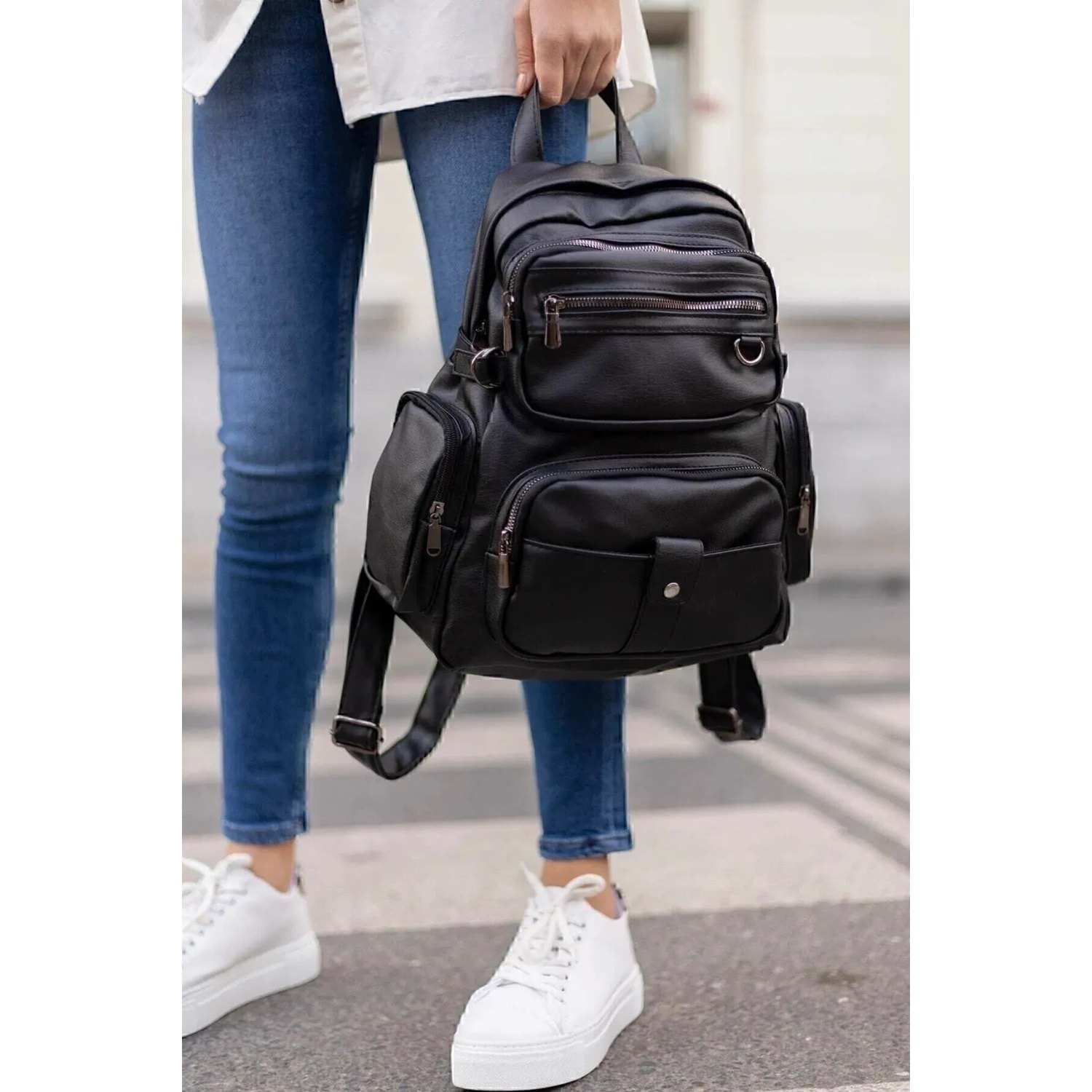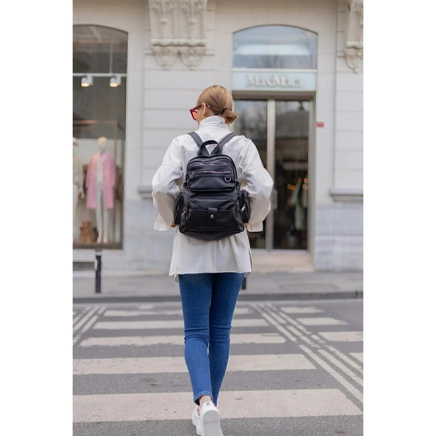 Bagorama MARLON Çok Gözlü Kadın Yıkama Deri Sırt Çantası - Siyah
